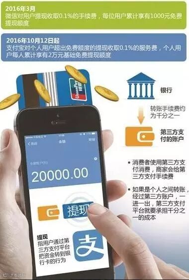 据一位商家透露,在用户通过第三方支付消费的过程中,商家会支付给第三方支付一定的服务费,费率高于提现收取费,相当于是商家帮消费者承担了资金成本,第三方还可从中赚取利润。