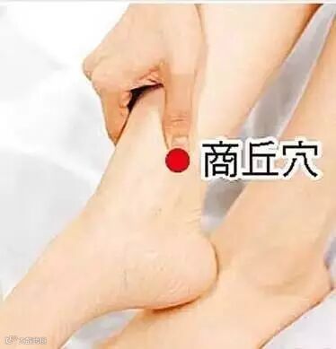 这是指商丘穴,位置在内踝前下方的凹陷中,用手指按揉该穴位,保持酸重感即可,每次3分钟左右,两脚交替做。