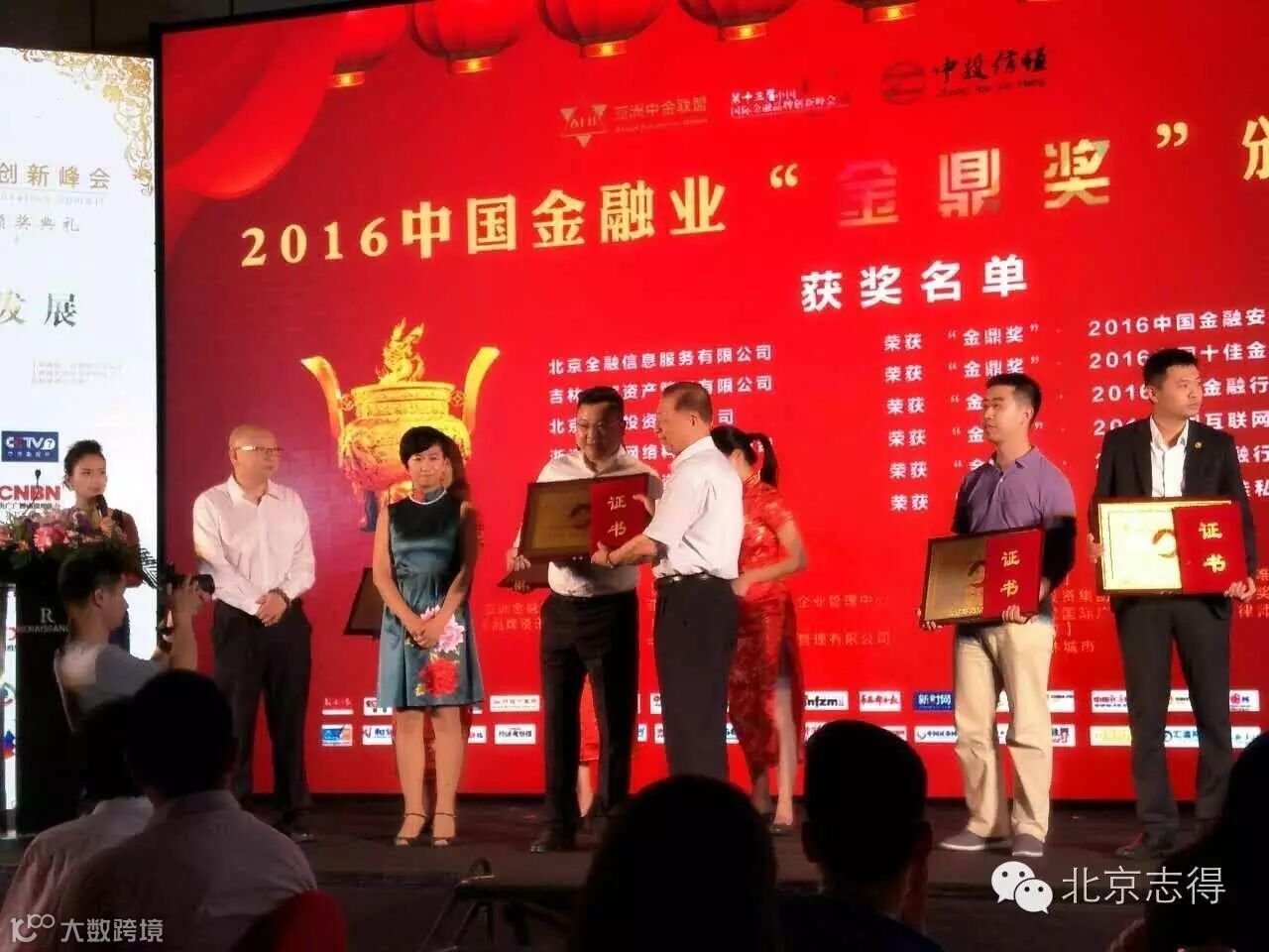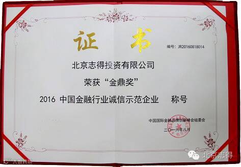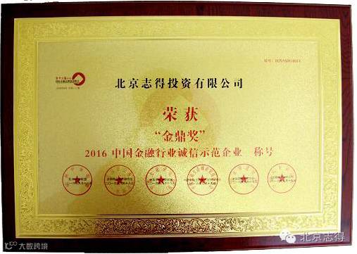 北京志得投资有限公司在本次2016中国金融业“金鼎奖”颁奖典礼上荣获“2016中国金融行业诚信示范企业”奖项,提高了公司在行业内的影响力和凝聚力,树立行业典范,为引导金融行业的健康发展做出了突出贡献;也充分证明了北京志得的实力和业界对公司的充分认可。