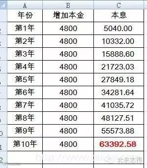 瞧不上这一年5040元的差别?那么把时间拉的足够长,看看10年的差距吧。