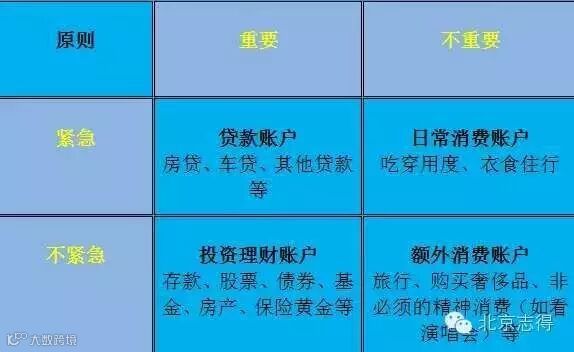 我们做进一步的细化,设立了紧急/不紧急和重要/不重要两个维度。所谓紧急/不紧急是指,这笔钱的使用会不会对于当下生活产生很大影响。所谓重要/不重要,则是指,这笔钱的使用会不会对未来生活非常有影响。