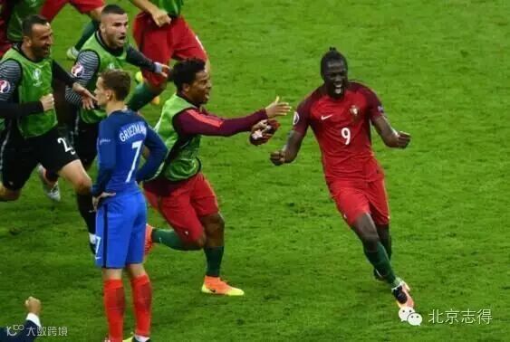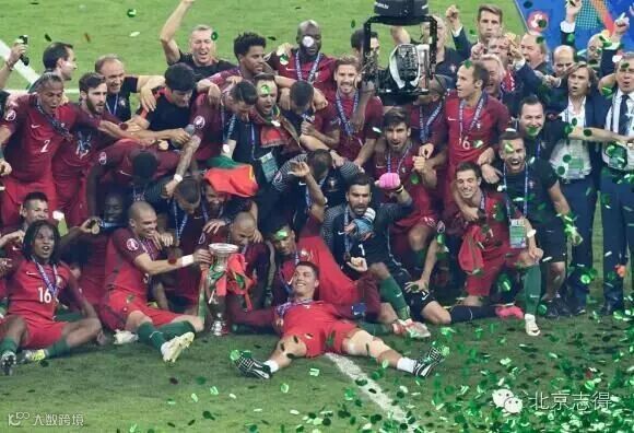 第109分钟葡萄牙打破僵局!穆蒂尼奥左肋直塞,埃德拿球内切距门25米处低射钻进左下角,1比0。此时距离比赛仅剩下10分钟了,德尚马上进行了换人调整,加强进攻,但全场浪费大把机会的法国队最终无力回天。1比0,葡萄牙首次夺得欧洲杯冠军,克里斯蒂亚诺·罗纳尔高高举起了德劳内金杯。