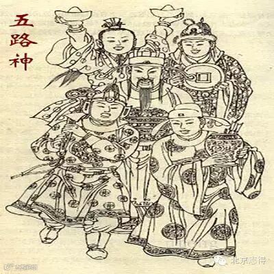 本指接五路行神,后来演变成接五路财神。旧时商家春节休假后,一般都在初四晚上接请五路财神,初五开市,以图吉利。