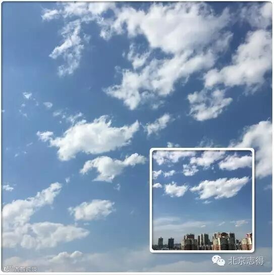 今天,北京又是蓝天白云,没有雾霾的天空给人一种踏上草原的错觉。长空万里,天空好像一座巨型建筑的穹顶,白云时而像朵朵莲花一尘不染,时而又似精雕细刻的飞禽走兽,应有尽有,它们翻滚着,追赶着。仰望天空,沁人心脾。