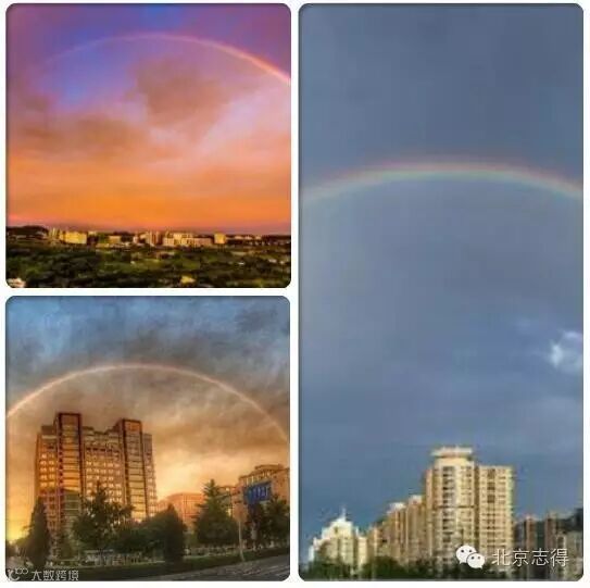 一道彩虹,让我们的心情轻松愉悦,走在挂着彩虹的天空下,心旷神怡,一切都好像慢了,也静了。北京的街道好像变成了巴黎的样子,整座城都陶醉在浪漫之中。