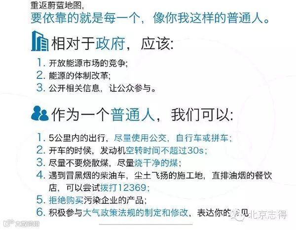 治霾需要首都人们,共同努力,从小事做起, 尽量选择绿色出行,用实际行动为治理雾霾献出绵薄之力。