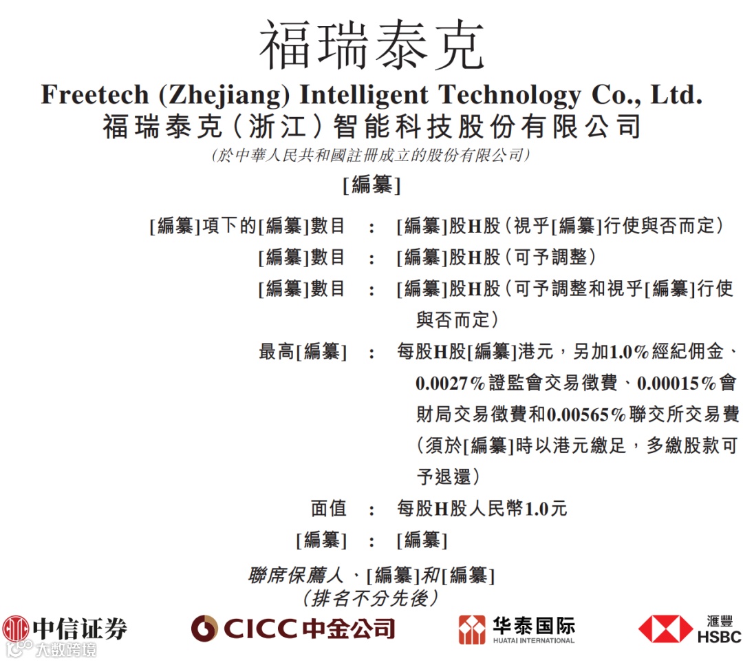 据港交所11月24日披露,福瑞泰克(浙江)智能科技股份有限公司向港交所主板提交上市申请书,中信证券、中金公司、华泰国际、汇丰为联席保荐人。