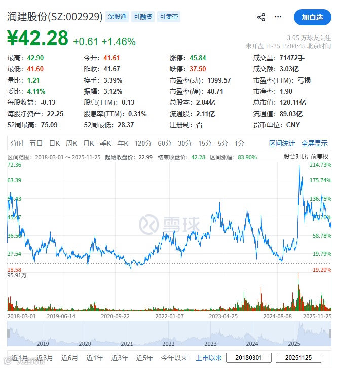 润建股份(002929.SZ)于22018年3月1日在深交所上市,截至2025年11月25日收市,其总市值约120.11亿元人民币。