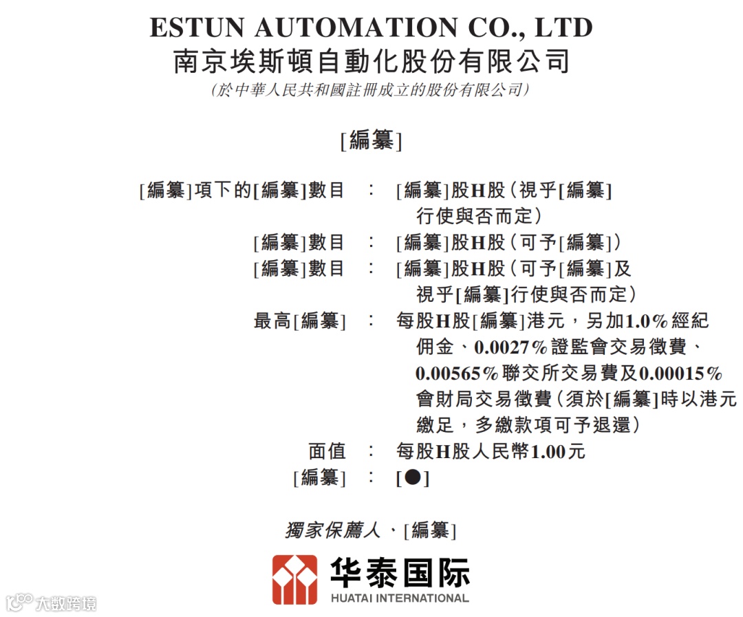 据港交所1月15日披露,南京埃斯顿自动化股份有限公司(002747.SZ)向港交所主板递交上市申请,华泰国际为独家保荐人。