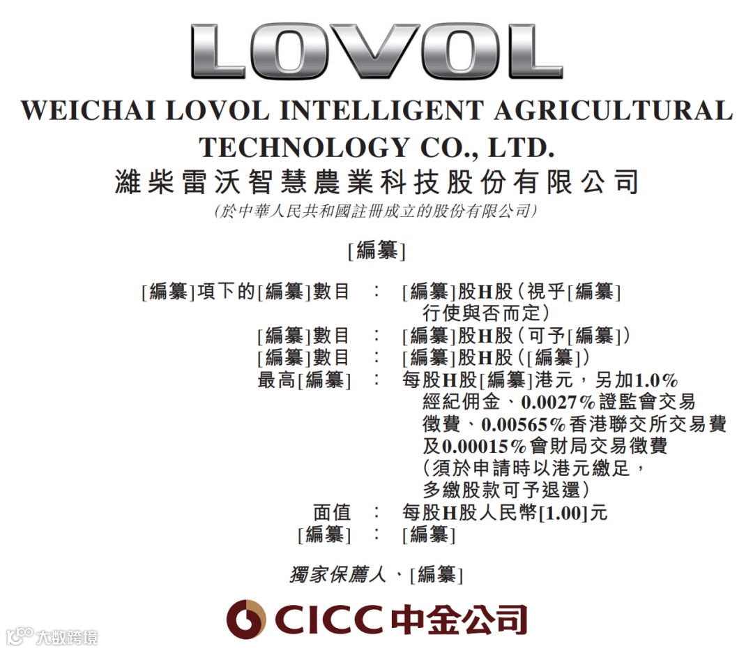 据港交所12月22日披露,潍柴雷沃智慧农业科技股份有限公司向港交所主板递交上市申请,中金公司为独家保荐人。