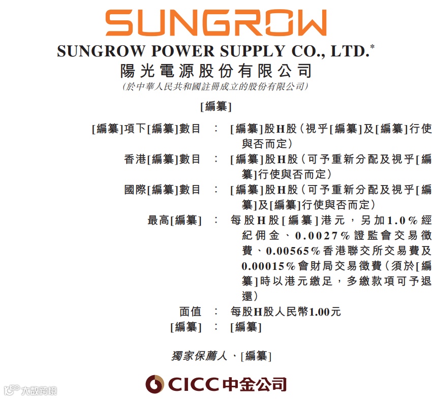 据港交所10月5日披露,阳光电源股份有限公司(300274.SZ)向港交所主板提交上市申请,中金公司为独家保荐人。