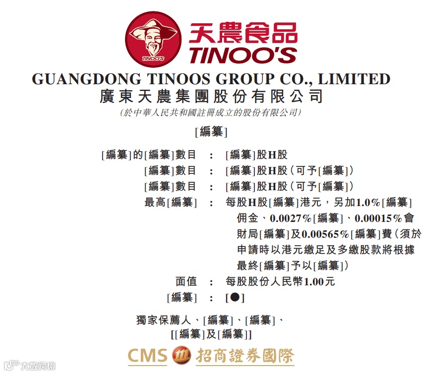 据港交所10月30日披露,广东天农集团股份有限公司向港交所主板提交上市申请书,招商证券国际为独家保荐人。