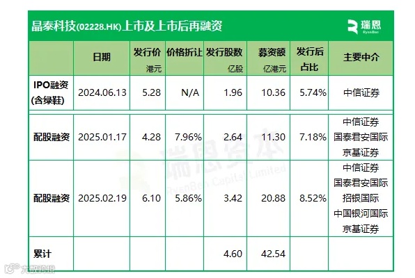 2025年1月19日,以每股4.28港元配售约2.64亿股,募资11.30亿港元;