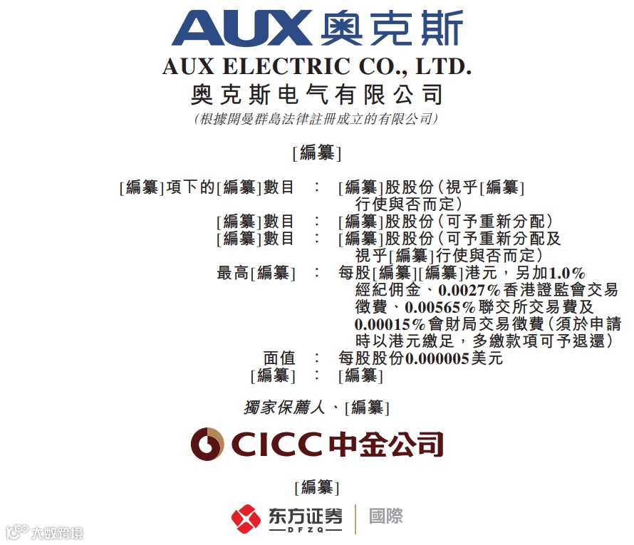 据港交所8月12日披露,奥克斯电气有限公司通过港交所主板上市聆讯,中金公司为独家保荐人。