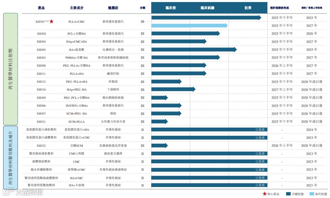 正是在这样的行业背景下,经过十年的积累,东方妍美在再生医学材料和器械领域掌握了关键技术,并完善了生产配套。据悉,东方妍美拥有13款III类医疗器械候选产品,包括核心产品XH301及用于治疗女性压力性尿失禁的候选产品XH321,用于乳腺癌术后乳房重建的交联ECM候选产品XH322。公司在江苏沭阳建有再生医学医疗器械生产车间,综合年产能可达1,000万剂;位于成都的再生材料生产车间也正在建设中,该车间涵盖生物材料和高分子材料,预计2026年一季度建成投产,这将进一步完善公司在再生医学产业链的布局,提升研发、生产综合实力。