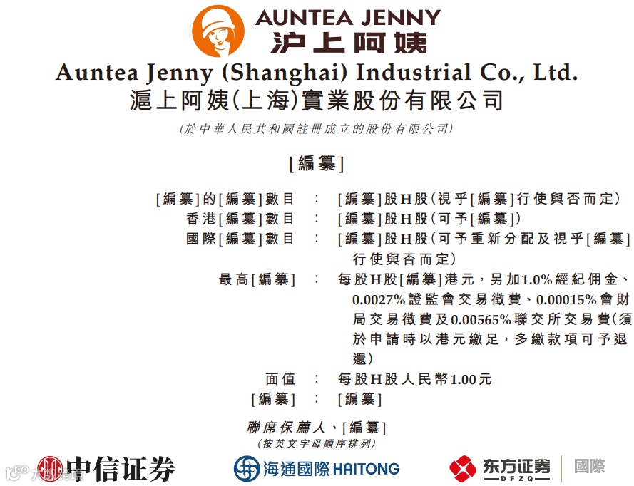 据港交所4月23日披露,沪上阿姨(上海)实业股份有限公司通过港交所上市聆讯,中信证券、海通国际、东方证券国际为联席保荐人。