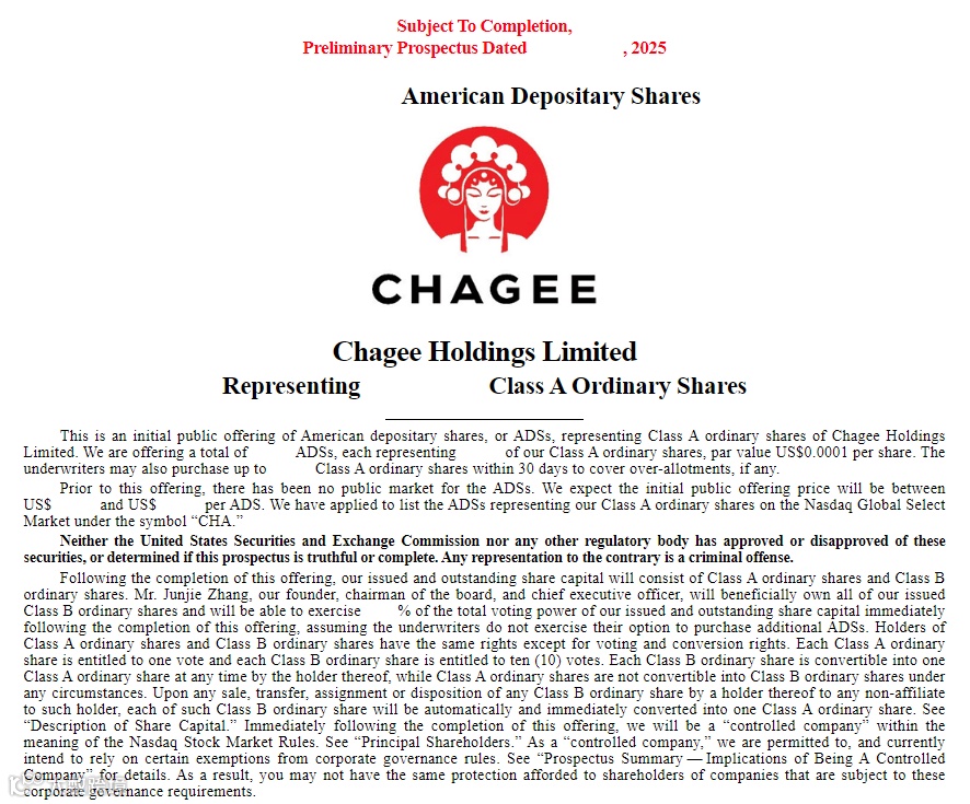 此前,霸王茶姬已向美国SEC公开提交招股书,将赴纳斯达克上市,股票代码为“CHA”,花旗集团、摩根士丹利、中金公司和德意志银行是此次发行的主承销商。
