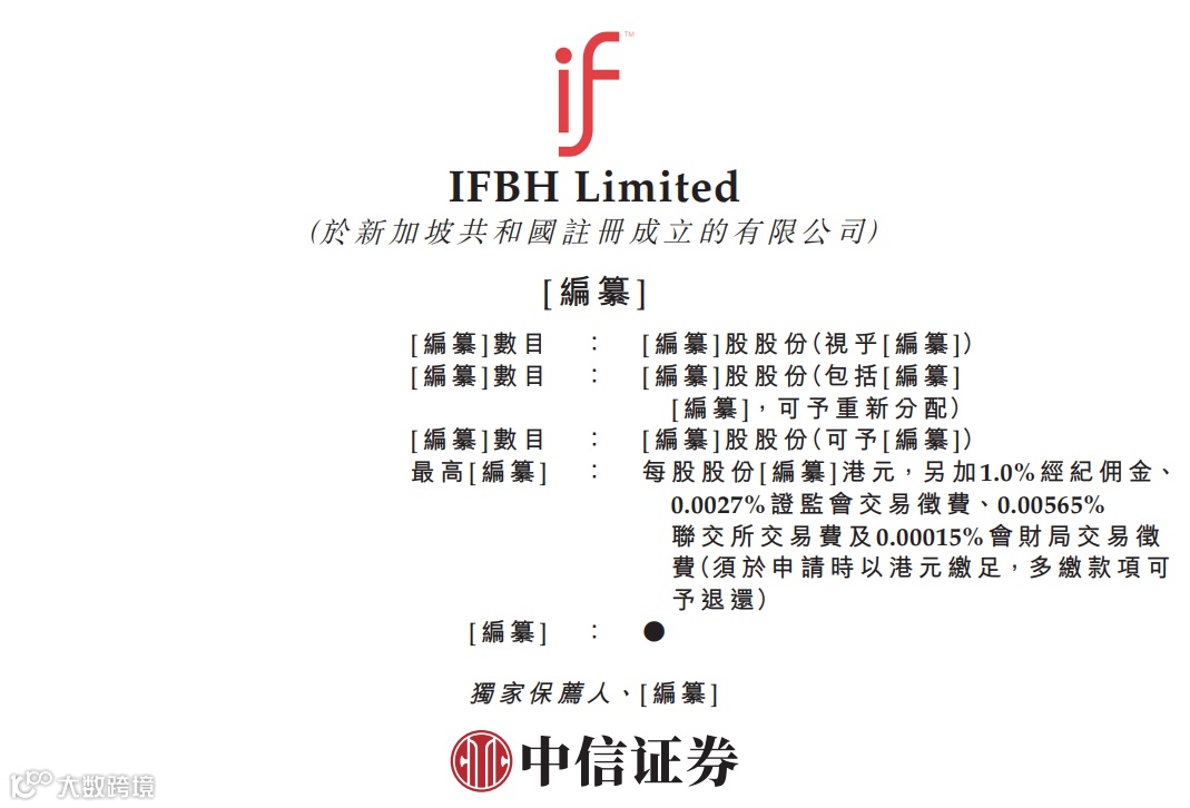 据港交所6月15日披露,IFBH Limited通过港交所主板上市聆讯,中信证券为独家保荐人。
