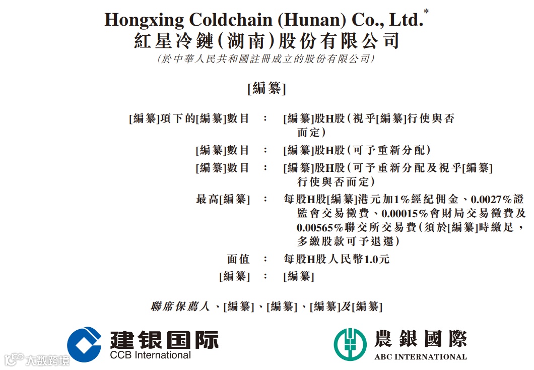 据港交所披露,红星冷链(湖南)股份有限公司递表港交所主板,建银国际、农银国际为联席保荐人。