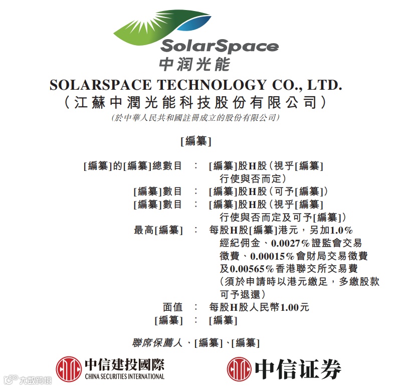 据港交所近日披露,江苏中润光能科技股份有限公司向港交所主板提交上市申请,中信建投国际、中信证券为联席保荐人。