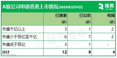 目前正在筹备的A股公司至少21家,其中已经递表12家、已公告拟赴香港上市的9家,此外还有传闻香港上市的4家。