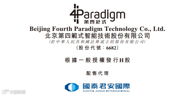 第四范式是次配售股份,占公司经配发及发行认购股份扩大后总股本的约4.98%。