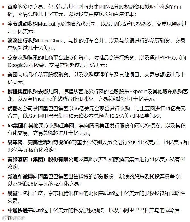 高准在很多并购及私募项目中提供法律服务,包括: