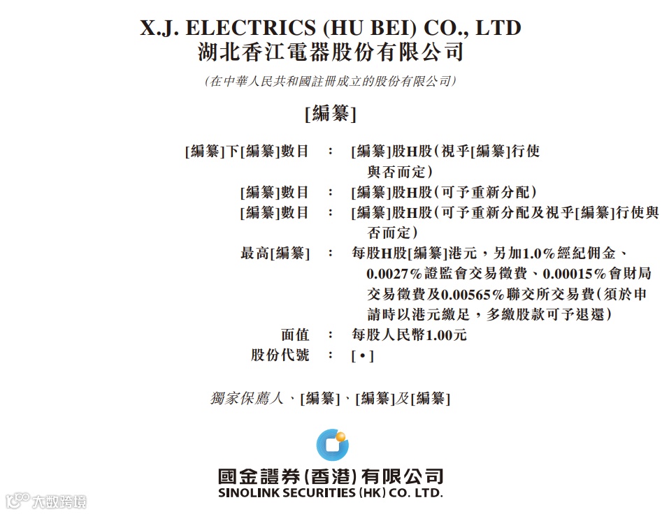 据港交所9月29日披露,湖北香江电器股份有限公司向港交所主板提交上市申请,国金证券(香港)有限公司担任独家保荐人。