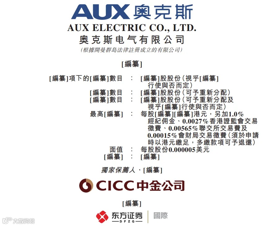 此前,奥克斯电气有限公司向港交所主板提交上市申请书,中金公司为独家保荐人。