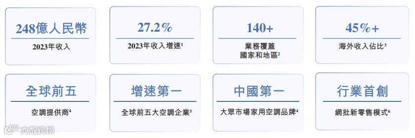 根据弗若斯特沙利文的资料,截至2023年,按销量计算,公司是全球第五大空调提供商。