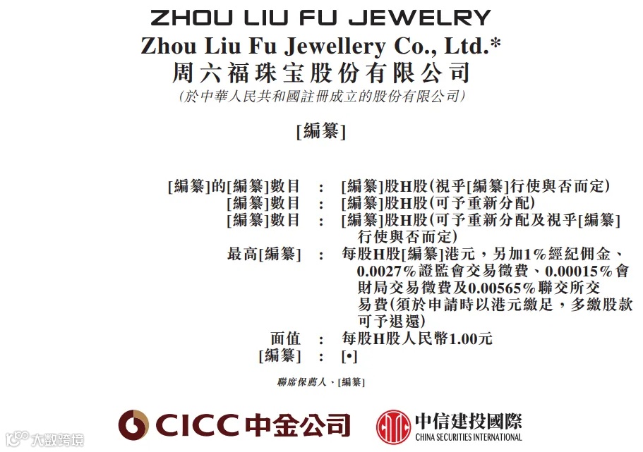此前,周六福已向港交所提交上市申请,中金公司与中信建投国际担任联席保荐人,后进一步委任招银国际为整体协调人。