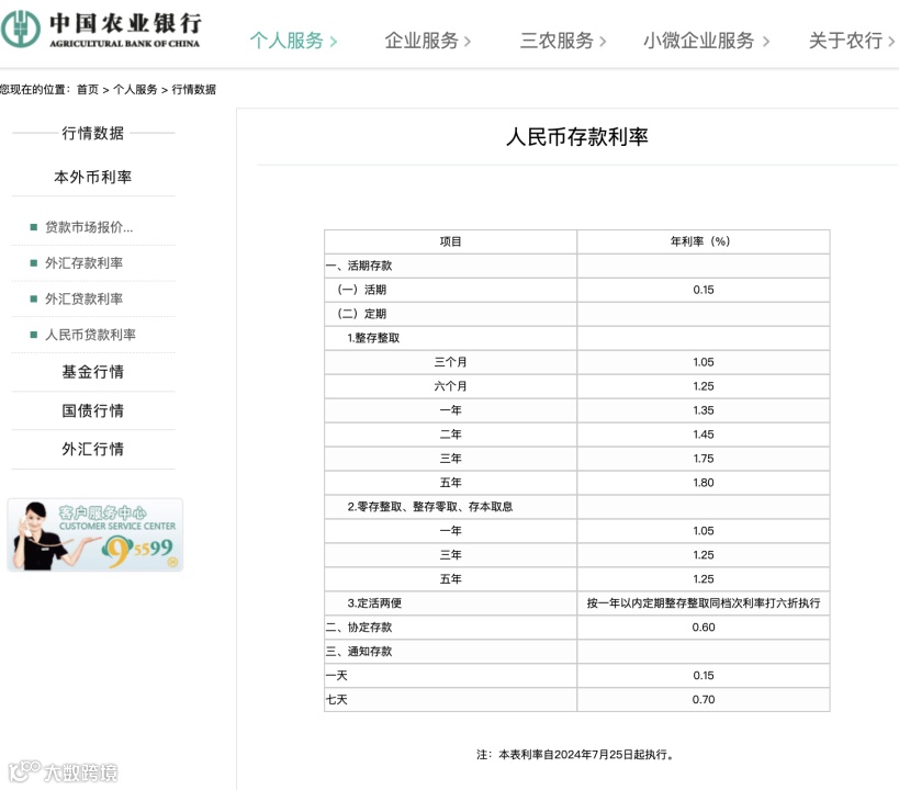 与此同时,农业银行、中国银行、建设银行、交通银行网站均已更新最新存款利率,与工商银行最新执行利率一致,并自7月25日起执行。