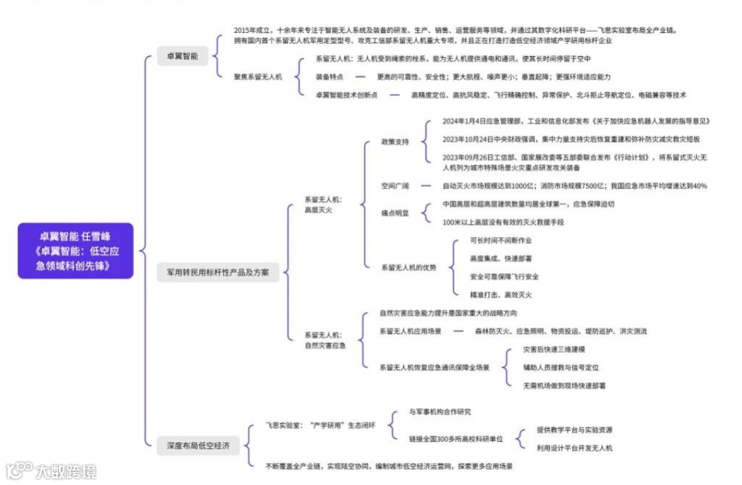 业务与创新标签:任雪峰强调,卓翼智能在无人机领域拥有三个显著标签:国内首个系留无人机军用定型型号研制者、系留无人机高空灭火系统开拓者(系统获得工信部重大专项),以及低空经济领域产学研用标杆的打造者。