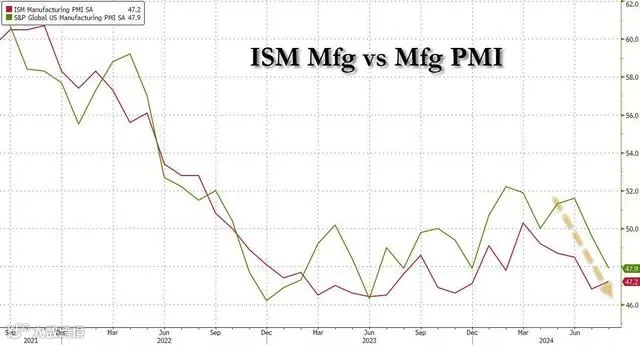 其中两项PMI数据分项指数趋同,并传递三大重磅信号。分析称,一是就业指数较7月明显回暖,表明本周五的非农就业报告将强于预期。二是制造商的支付价格指数重拾升势,表明商品通胀降温可能已经结束,甚至已看到本周期CPI低点。三是新订单/库存比率跌至衰退期水平,表明制造业问题严重。另外,有经济学家表示,制造业对美国经济的拖累作用可能在未来几个月加剧。