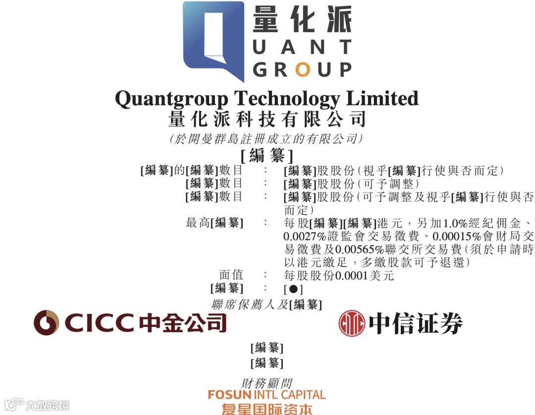 据港交所5月20日披露,中国领先的场景化数字解决方案提供商量化派科技有限公司递表港交所主板,中金公司、中信证券为联席保荐人,复星国际资本为财务顾问。