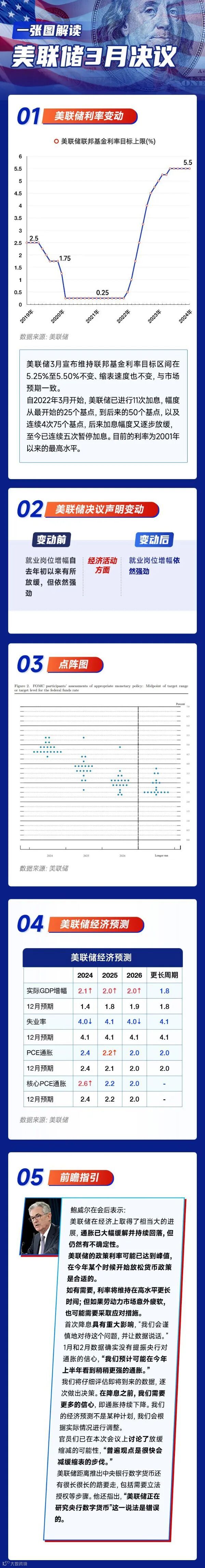 一图解读美联储3月决议:如期按兵不动 今年降息三次预期不变!