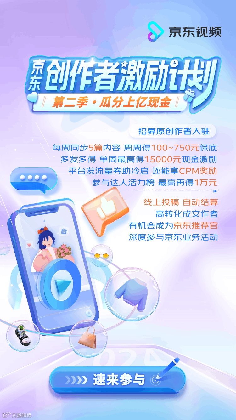据透露,京东将对数码3C、家电家居、母婴、宠物、时尚、运动、美妆个护、健康、车品等超过20个创作领域的达人进行补贴。