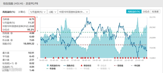 第一个原因是港股低估值吸引力。目前恒生指数市盈率仅8.80倍,处于近十年分位点8.45%;风险溢价为8.75%,处于近十年分位点95.2%;另外股息率为3.87%,处于近十年分位点83.52%。市盈率越低、风险溢价越高、股息率越高,说明市场在当前位置的性价比越高,而这三组数据显示当前港股估值处于相对底部水平,吸引南向资金流入。