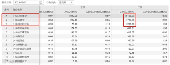 从今年资金净买入的情况来看,公用事业、金融业和资讯科技业是港股通资金净买入最多的三个行业,净买入额度分别为2125.39亿元、1717.58亿元、1231.68亿元。