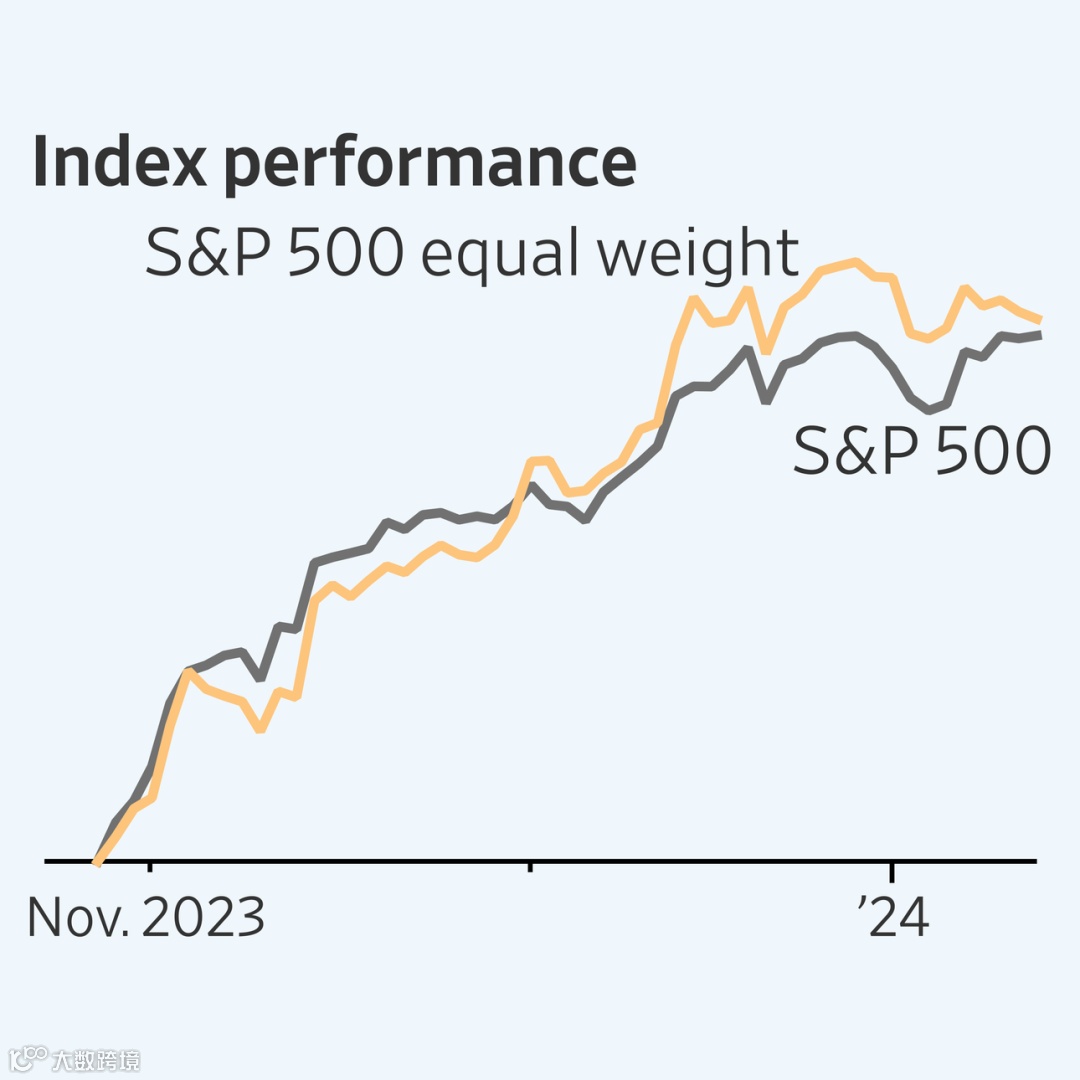 投资者有理由抱有憧憬。自去年10月27日股市触及近期低点以来,聚焦小型股的罗素2000指数累计上涨19%,标普500等权重指数(赋予最大的和最小的成分股公司相等的权重)涨17%。两者均跑赢上涨16%的传统标普500指数。