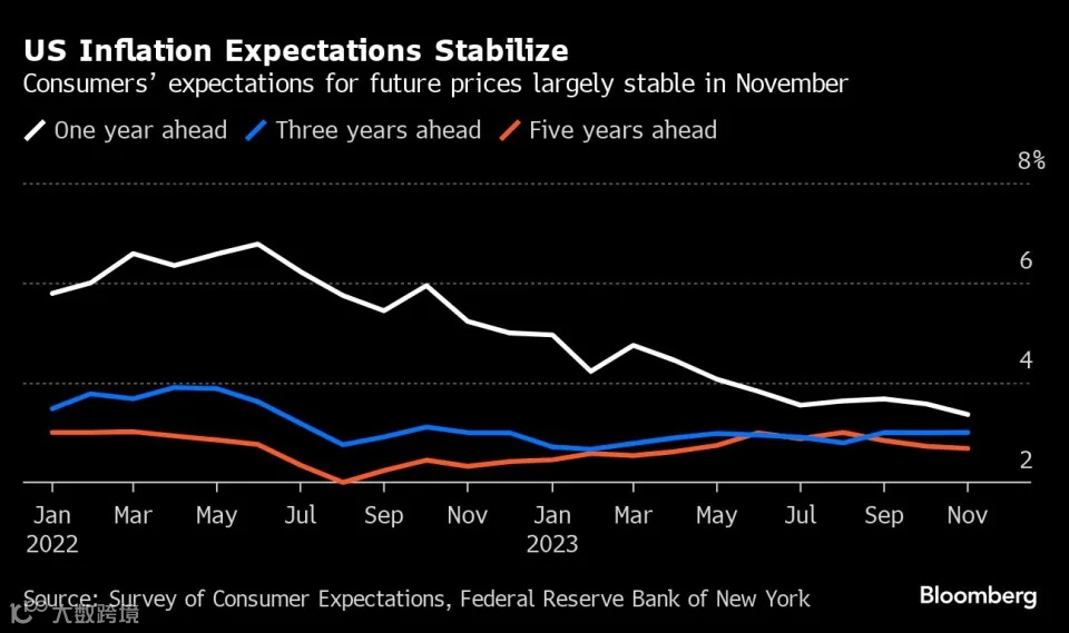 11月美国一年期通胀预期降至3.4%(图片来源:彭博社)
