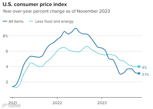 美国11月CPI放缓,但核心CPI环比录得反弹(图片来源:CNBC)