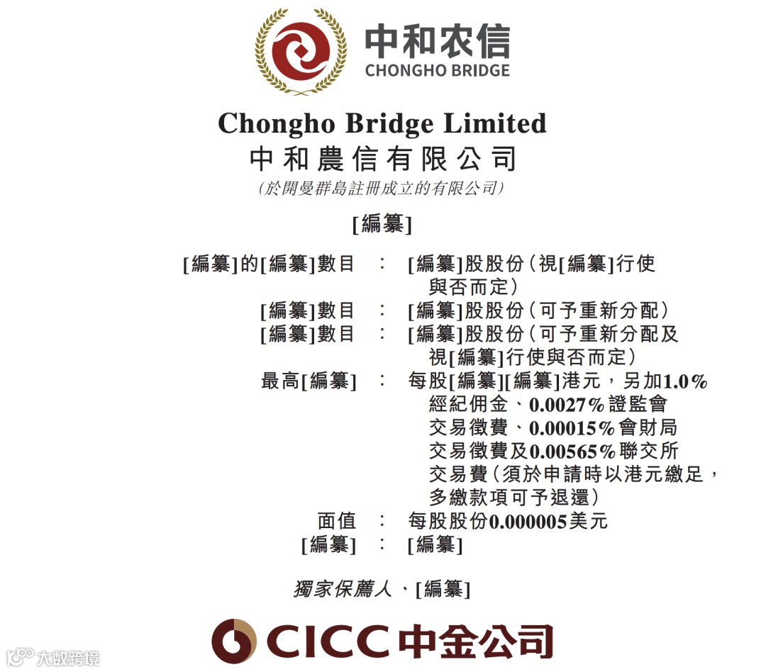 据港交所2月28日披露, 中和农信有限公司递表港交所主板,中金公司担任独家保荐人。