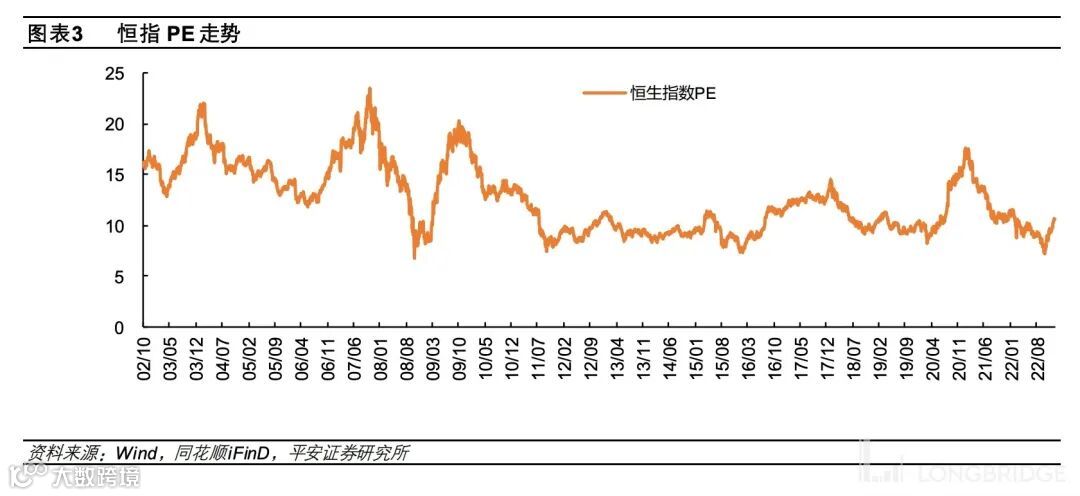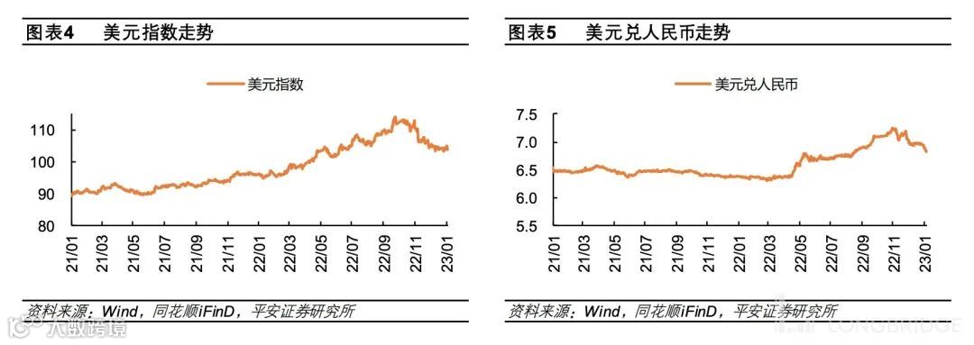 其三是从汇率面分析,在国内经济复苏而海外衰退的大背景下,美元指数回落促使人民币汇率强劲反弹,人民币汇率持续走强吸引外资增配港股。