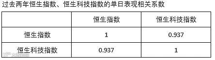 恒生科技指数的单日表现相关系数如图表12显示