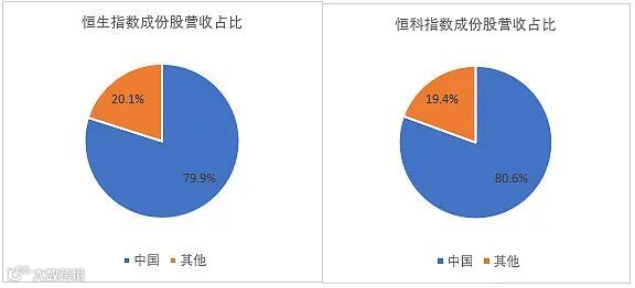 恒生指数和恒生科技指数成份股在中国内地的营收占比分别高达79.9%和80.6%*