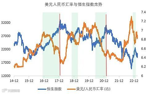 港股走势和人民币兑美元汇率在大周期上呈现较强正相关性