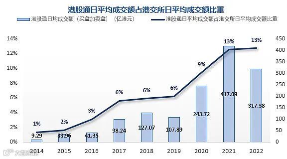 过去5年中国内地企业每日平均成交额常年占港股的80%及以上