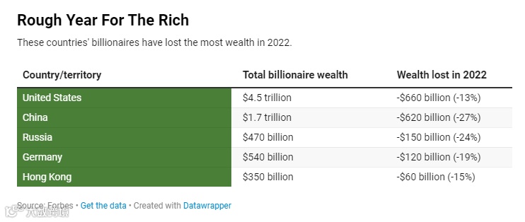 根据福布斯统计,今年美国亿万富翁财富损失6,600亿美元,是所有国家当中最多,主要是由利率上升、通膨飙涨和经济恶化带动科技股暴跌所导致,其中,马斯克今年财富蒸发1,150亿美元,超越贝佐斯、扎克伯格等富豪,成为全美最大苦主。