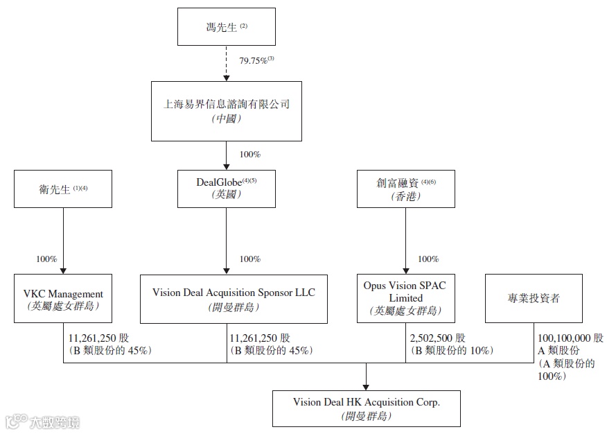 上市完成后,专业投资者所持的A类股份将占已发行股份总数的80%;卫哲先生、DealGlobe、创富融资将合计持有的B类股份占已发行股份总数的20%的股份,B类股份将于SPAC交易完成后转换为A类股份,B类股份及发起人权证将不会在港交所上市交易。